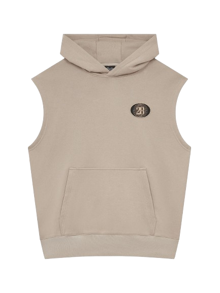 28 Sleeveless Badge Hoodie Mushroom